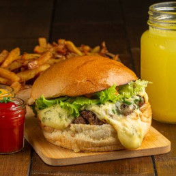 - Accompany your burger with a side of homemade fries topped with cheddar and bacon or opt for the classic fries with cheddar sauce.